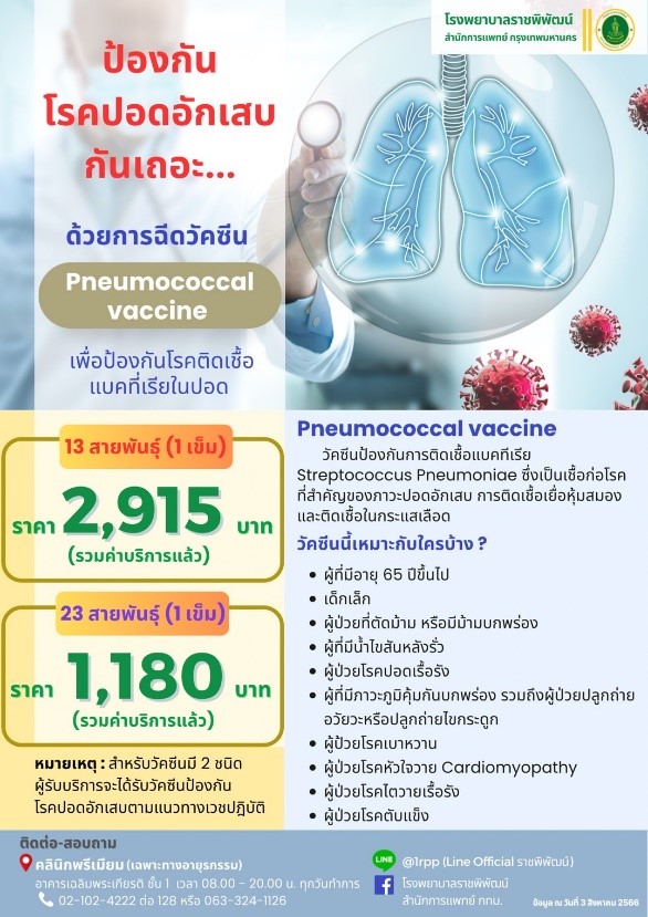 โดยมีค่าใช้จ่ายสุทธิ 2,915 บาท สำหรับวัคซีน 13 สายพันธุ์ และ 1,180 บาท สำหรับวัคซีน 23 สายพันธุ์
