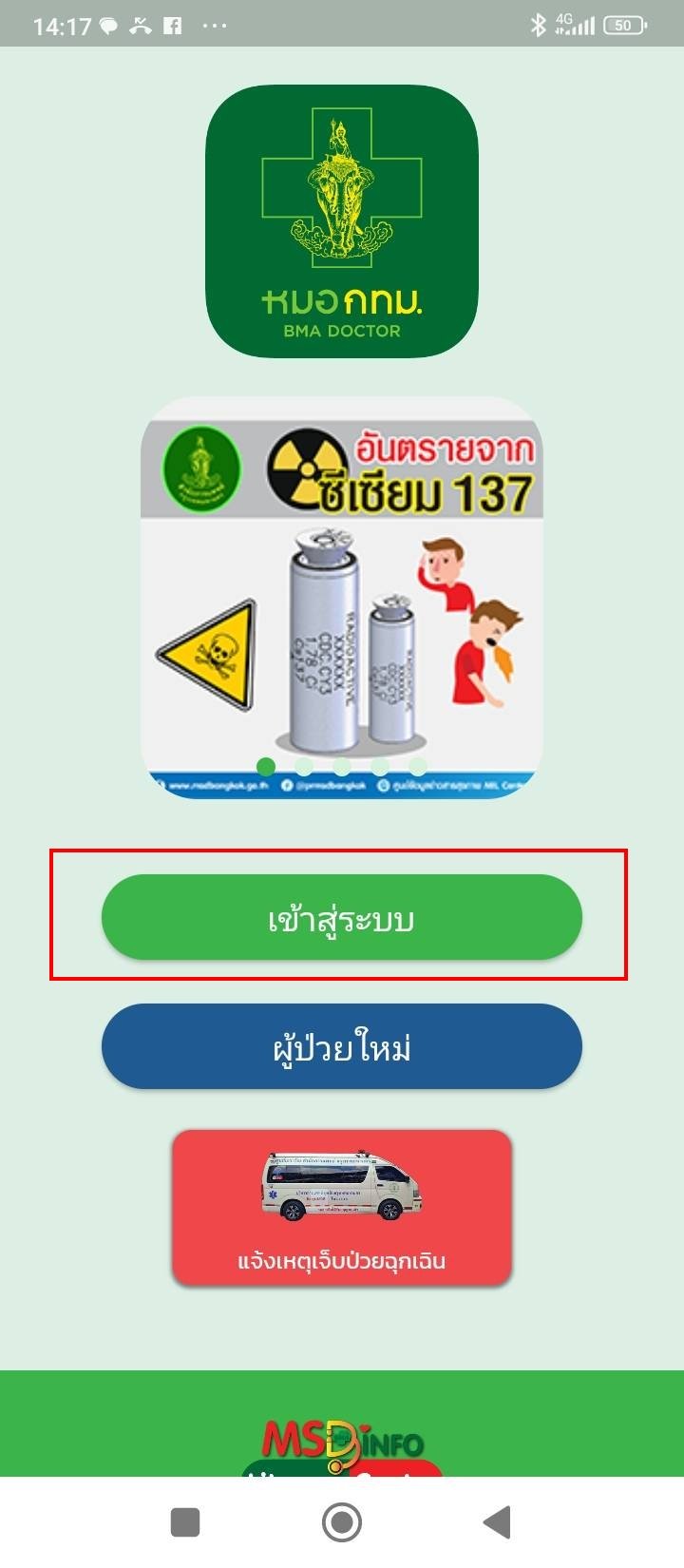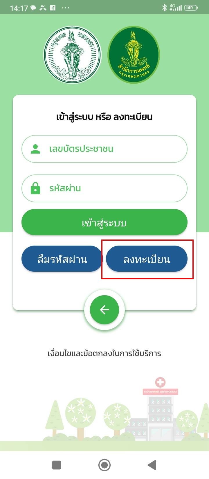 เข้าไปที่แอพพลิเคชั่นหมอ กทม. แล้วกดปุ่ม