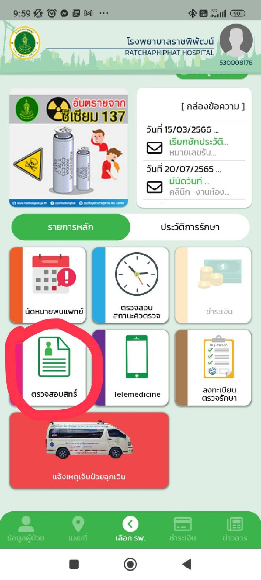 เข้าแอพ หมอ กทม. แล้วกดปุ่มตรวจสอบสิทธิได้เลยครับ